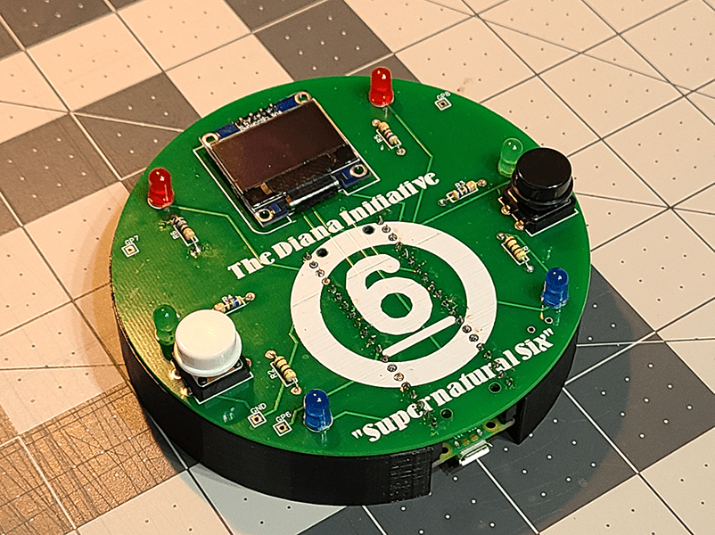 This is page for the The Diana Initiative 2021 maker village kit, featuring the Raspberry Pi Pico and a .96″ OLED screen it functions as an amusing desk toy or feel free to experiment with the 6 LEDs, input button and that sweet OLED screen. Add your own components with with the three accessible GPIO pins and add add portability with a suggested power solution.