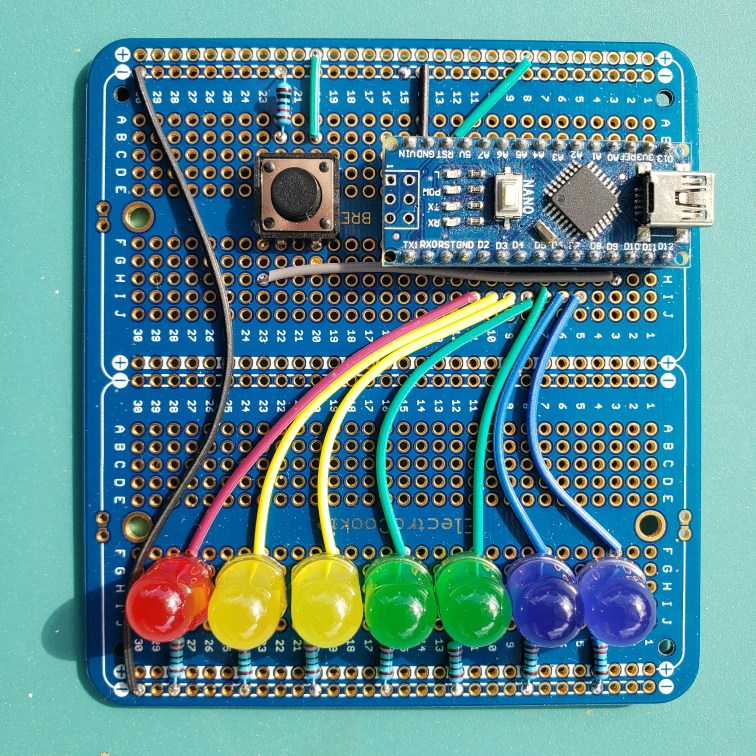 | Blue LED var blue02 | F7 – I6 | should line up with pin D7 on the arduino |